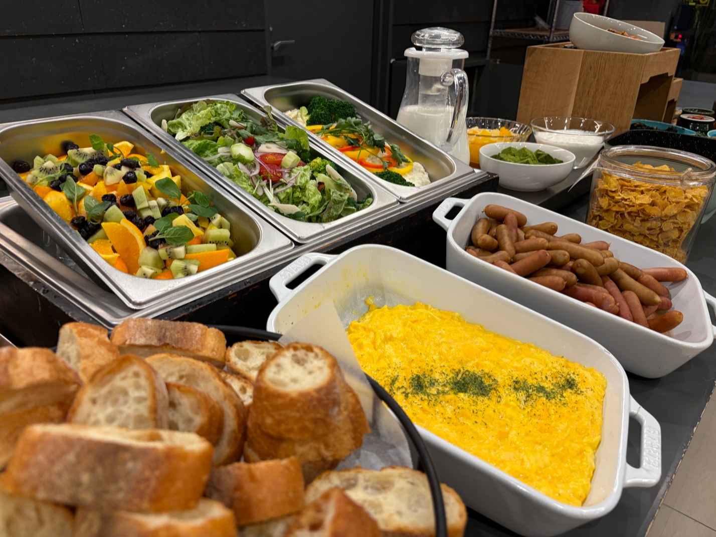 サラダやスクランブルエッグ、シリアルなどの定番メニューから、